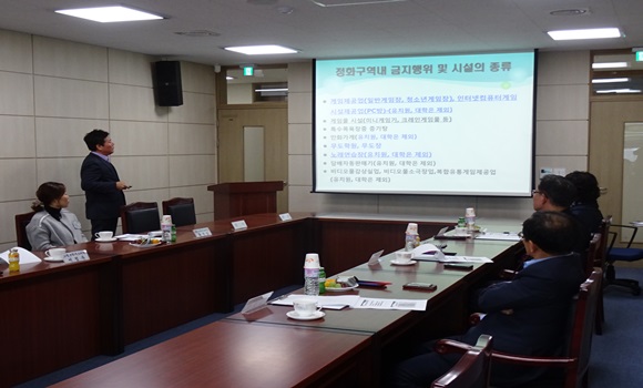 이날 연수에서는 학교환경위생정화구역 제도의 올바른 이해, 학교보건법에 규정된 학교환경위생정화구역에서의 금지행위 및 시설의 종류, 학교환경위생정화구역 설정 대상, 심의 신청 방법과 절차, 위원회의 역할 등에 대해 연수했다.