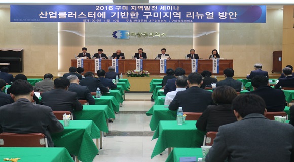 [구미] 구미상공회의소와 한국은행 대구경북본부는 11월 10일 본 회의소 2층대강당에서 류한규 회장, 박진수 본부장, 조규찬 구미세관장, 차종범 구미전자정보기술원 등 100여명이 참석한 가운데 ‘2016 구미 지역발전 세미나’를 개최했다.