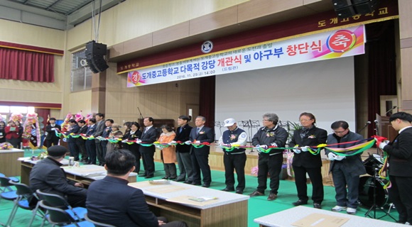 [구미] 지난 11월 25일 도개중·고등학교의 오랜 숙원인 다목적 강당 드림관 개관식과 함께 중·고등부 야구부 창단식을 함께 가졌다. 이날 개관식은 이동걸 구미시교육지원청 교육장, 구미시 권순서 안전행정 국장, 도·시의원 및 야구관계자, 주민 등 600여명이 참석한 가운데 성대하게 거행됐다.