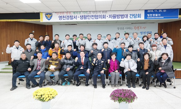 [영천] 영천경찰서는 11월 25일 경찰서장, 각 과장·파출소장, 생활안전 협의회 회원 24명, 자율방범대 대원 22명 등 총 66명이 참석한 가운데 협업단체 간담회를 실시했다.