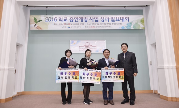 [경북] 경상북도교육청은 11월 30일 경북대학교에서 흡연예방사업 심화형 학교 교감 및 교육지원청 담당자 110명을 대상으로 ‘2016 학교 흡연예방사업 성과 발표대회’를 개최했다.