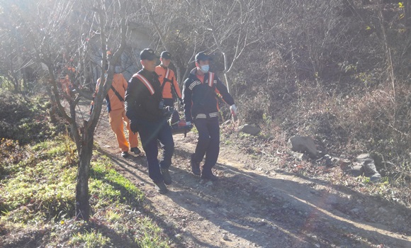 [칠곡] 칠곡소방서 119구조구급센터는 지난 12 월 6일 오후 12시 20분경 칠곡군 지천면 오산리에 위치한 야산에서 벌목공이 나무를 자르던 중 쓰러지는 나무에 맞아 다리 골절상(추정)을 입었다는 신고를 받았다.