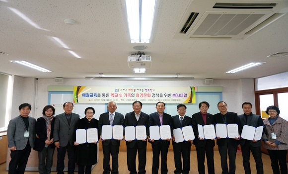 이날 고령초등학교와 대한노인회 외 8개 단체와 기관은 효경을 실천하는 가족문화형성 및 학교폭력예방을 위해 노인공경 및 예절교육을 실시해 지역 사회 발전을 위하여 상호교류하고 협력하기로 했다.