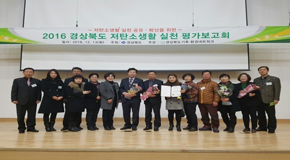 [문경] 문경시는 12월 13일 경상북도가 23개 시·군을 대상으로 개최한 ‘2016년 저탄소생활 실천 평가보고회’에서 우수자치단체로 선정되어 기관표창과 함께 100만원의 포상금을 수상했다. 이번 평가는 2030년까지 온실가스 배출 전망치 대비 37%를 감축 목표로 한 시군별의 저탄소생활 실천사항을 추진한 성과를 평가한 것이다.