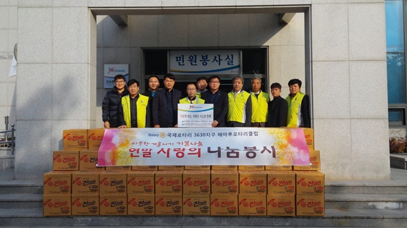 구미 해마루로타리클럽은 국제로타리 3630지구 15지역 소속으로, 2011년 8월에 설립되어 31명의 회원이 매년 어려운 이웃을 위해 200만원 상당의 쌀과 라면을 기탁해 왔으며, 올해는 저소득층 자녀들의 꿈을 이루는데 실질적인 도움을 주고자 장학금도 함께 전달했다.