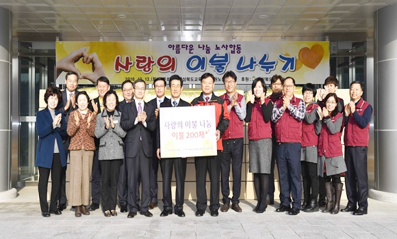 이번 행사는 그동안 뜻을 모아 마련한 성금과 지난 5월 개최한 제11회 한마음체육대회 일일모금행사 수익금을 합해 마련한 재원으로, 연말을 앞두고 도내 경제적으로 어렵고 소외된 학생들에게 따뜻한 잠자리를 제공하고자 이불 200채(900만원상당)를 각 가정으로 택배 발송했다.