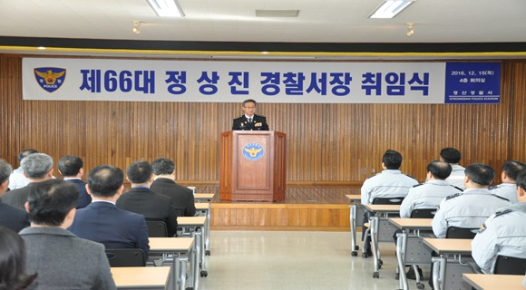 [경산] 경산경찰서 제66대 서장으로 정상진 총경이 취임했다. 12월 15일 4층 대회의실에서 열린 취임식에는 각 과장, 파출소장 및 직원 등 100명이 참석해 취임을 축하했다.