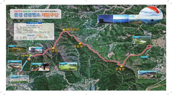 시는 단산 모노레일 사업과 더불어 문경읍 고요리 일대에 단산 정상 숲속별빛 전망대, 야영장, 생태숲길, 눈썰매장, 아리랑 민속마을, 활공장에서 호계만세지를 연결하는 힐링 둘레길을 함께 조성해 문경새재와 더불어 전국 최고의 관광명소로 개발할 방침이다. |