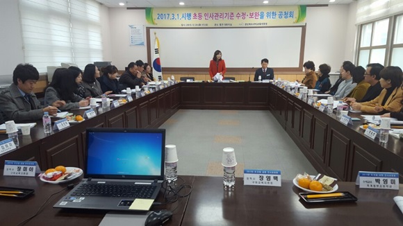 [구미] 구미교육지원청은 12월 20일 별관 대회의실에서 관내 유·초등학교 대표 교원 30명이 참석한 가운데 2017년 3월 1일 시행 인사관리기준 수정·보완을 위한 인사공청회를 개최했다.