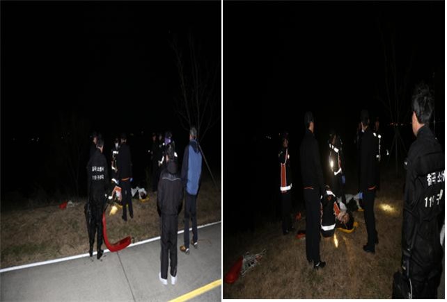 [칠곡] 칠곡소방서는 12월 23일 20시 59분경 왜관여성의용소방대원이 낙동강변에서 운동 중 익수자를 발견했다는 신고를 접수받고 출동했다.