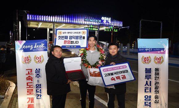 [영덕] 영덕군은 상주-영덕고속도로가 지난 12월 26일 0시 전국간 동시 개통됨에 따라, 영덕을 찾는 관광객 및 지역민들을 대상으로 ‘상주-영덕 고속도로 첫손님 맞이’ 이벤트를 개최했다.