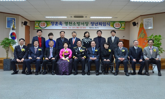[영천] 영천소방서는 지난 12월 27일 본서 3층 대회의실에서 김영석 영천시장, 한혜련·김수용 도의원 등을 비롯한 각계각층의 내빈들과 소방공무원, 소방행정자문단, 가족 및 지인, 의용소방대 등 200여명이 참석한 가운데 장훈욱 영천소방서장(지방소방정)의 정년퇴임식 행사를 가졌다고 밝혔다.