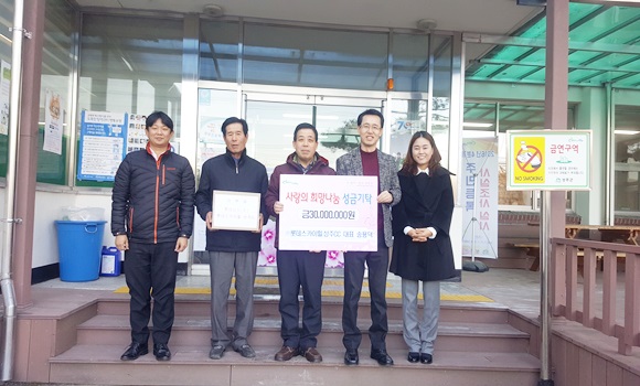 [성주] ㈜롯데스카이힐 성주CC (대표 송용덕)는 지난해 12월 30일 성주군 초전면에 희망 2017 나눔캠페인 성금 3,000만원을 지정기탁 했다. 성주CC골프장은 개장 이후 지역의 소외된 계층에 대한 성금 및 쌀 등 현물지원을 지속적으로 해왔고, 평소 관내 주민들을 위한 봉사에 적극 참여하고 있다.