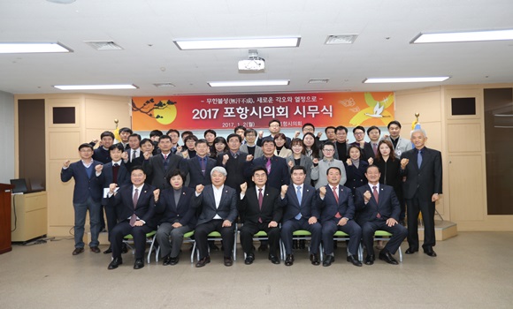 [포항] 포항시의회는 정유년 새해를 맞아 시민들에게 희망을 주고 민생위주의 생산적 의정활동을 펼친다는 각오로 ‘무한불성(無汗不成)’을 외치며 2017년을 열었다.