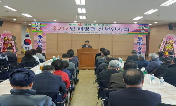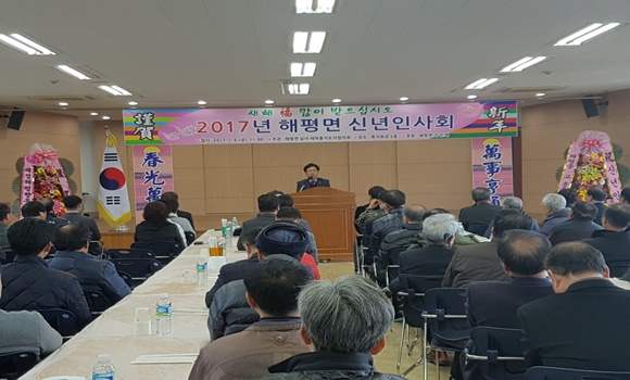 [구미] 해평면은 1월 6일 해평면복지회관 회의실에서 이홍희 도의원, 윤종호 산업건설위원장, 한성희 시의원을 비롯한 지역 각 기관·단체장 및 주민 150여명이 참석한 가운데 2017년도 정유년(丁酉年) 신년인사회를 개최했다.