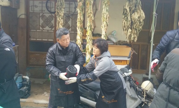 [구미] 새누리당 장석춘 국회의원(경북 구미시을)은 1월 7일 자원봉사자 및 조규자 부인, 당원과 함께 소외계층을 돕기 위한 사랑의 연탄 나눔 운동본부와 함께 배달 봉사 활동을 펼쳤다.