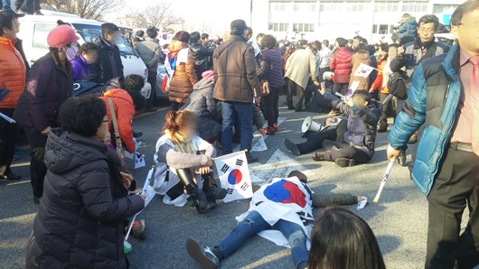 이날 현장 분위기는 시청 앞 박사모 등 극우보수파 200여명이 ‘문재인 빨갱이, 문재인 물러가라’며, 태극기를 흔들며 박근혜 대통령 탄핵반대를 외쳤다.