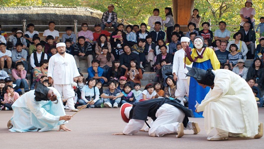 특히 하회마을에서 국가무형문화재 제69호인 ‘하회별신굿탈놀이’ 상설공연을 연중 214회나 운영하고 있다. 신명나는 탈춤 판은 공연을 보고 있는 사람들로부터 박장대소를 이끌어낼 만큼 많은 인기가 있다.