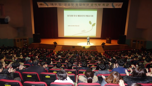 또한 “공항이전은 해당 지자체의 장기발전계획의 전면 재수립이 필요할 만큼 중대한 사업이라며 오늘 특강을 통해 공항 통합이전에 대한 이해도와 관심도를 높이는 기회가 되기를 바란다.”고 말했다. |