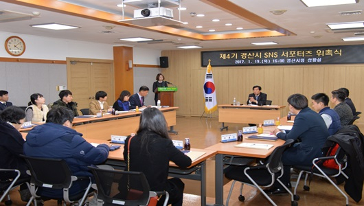경산시는 1월 19일 시청 상황실에서 ‘제4기 경산시 SNS 서포터즈 위촉식’을 갖고 본격적인 온라인 홍보 활동에 들어갔다. 시는 지난달 26일부터 이달 6일까지 관내 거주하는 SNS 사용자를 대상으로 지원서를 접수받아 SNS 매체를 활발히 운영하는 17명을 선발했다.