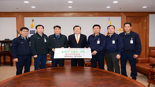 현대모비스(김천공장 공장장 김용희)와 협력업체는 설 명절을 앞두고 전통시장 상품권을 구입하여 지역 전통시장 살리기에 앞장서고 있다.