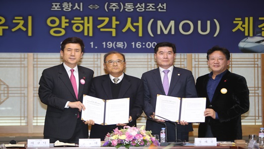 포항시는 1월 19일 이강덕 포항시장과 정해종 시의회 부의장 등이 참석한 가운데 (주)동성조선과 200억원 규모의 투자양해각서를 체결했다. (주)동성조선은 이번 투자양해각서 체결을 통해 영일만 제2일반산업단지(12,577㎡)에 200억을 투자해 중·소형 선박제작 공장을 건설하고 70여명의 고용을 창출할 계획을 밝혔다.