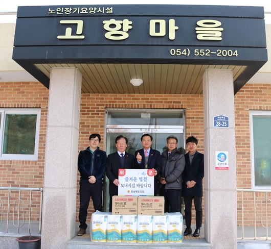 경북도의회 고우현(문경2) 부의장, 박영서(문경1) 도의원은 1월 20일 문경시 영순면에 소재한 사회복지시설 고향마을을 방문해 연말연시 자칫 소외되기 쉬운 어르신들을 찾아뵙고 비록 짧은 시간이지만 일일이 어르신들의 손을 어루만지며, 작으나마 어르신들에게 꼭 필요한 바디로션, 샴푸 등 목욕용품 등 시설에서 희망하는 생활용품들을 전달해 이웃사랑을 실천하는 시간을 가졌다.