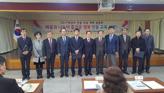 경상북도 안동교육지원청은 1월 19일 3층 대회의실에서 유·초·중학교 교(원)장 50여명을 대상으로 2017학년도 ‘배움과 나눔이 즐거운 행복 안동 교육 실현!’ 계획 설명회를 개최했다. 행복 안동 교육 설명회는 2016학년도 안동교육지원청이 추진한 주요 업무 추진 성과를 홍보하고, 2017 안동 교육 주요 업무 계획을 안내해 각 학교에 맞는 교육 계획을 철저히 세우도록 하는데 초점을 두었다.
