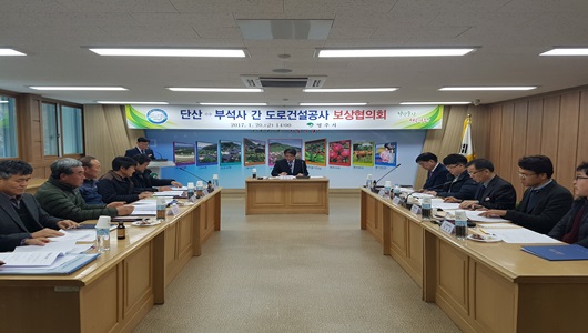 영주시는 1월 20일 시청 제2회의실에서 경북〜충북〜강원 3도 연결 국가지원지방도 28호선(단산〜부석사) 건설공사 편입토지 보상지원을 위한 보상협의회를 개최했다.