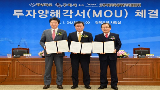 경상북도와 구미시는 1월 24일 글로벌 기업인 도레이배터리세프레이터필름(주)과 리툼이차전지 분리막 신규라인 증설 공장건립 투자양해각서(MOU)를 체결했다.