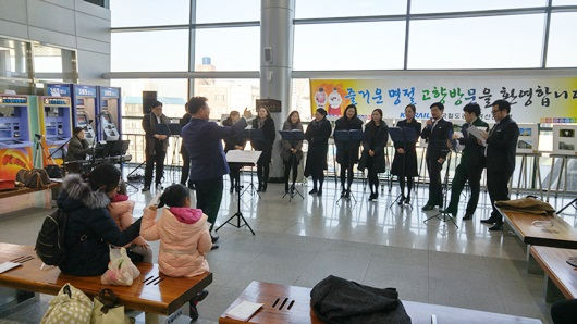 경산시립합창단은 설 명절 고향을 찾는 귀성객들을 환영하기 위해 1월 26일 경산역 2층 대합실에서 음악회를 개최해 고향을 찾는 귀성객들에게 색다른 볼거리를 선사했다. |