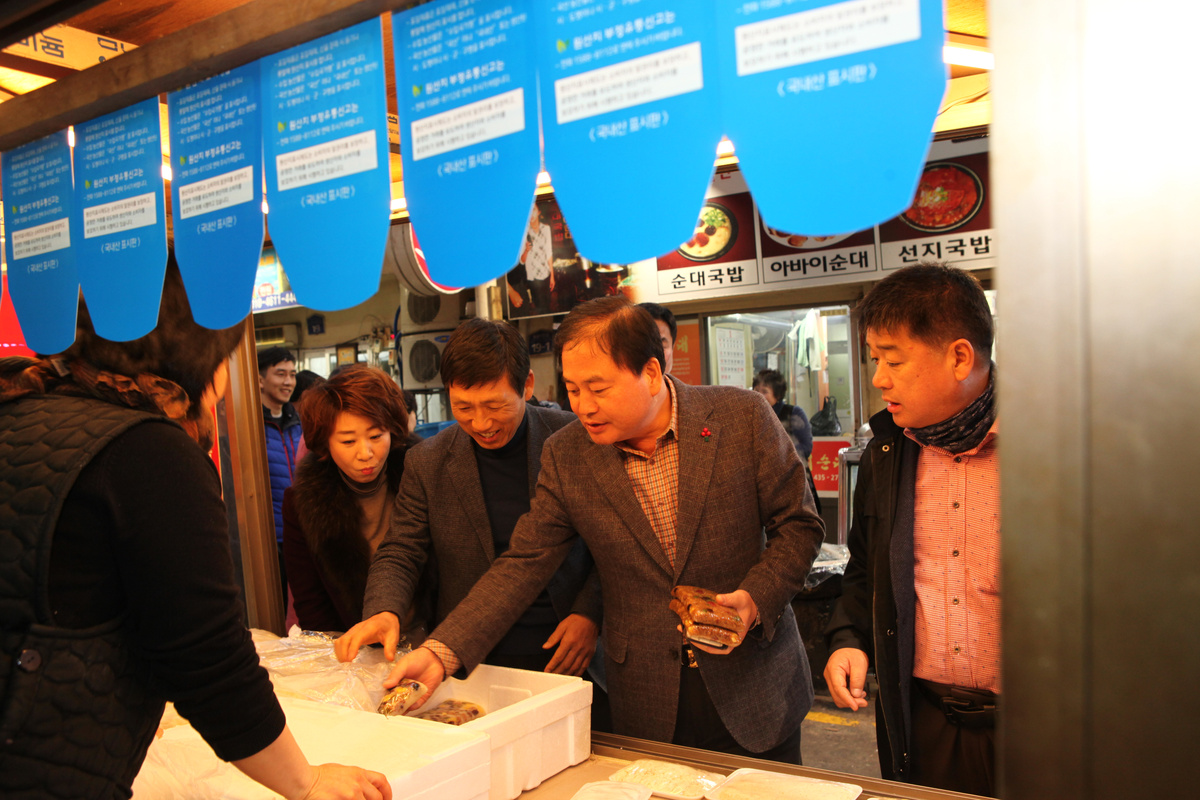 김천시의회는 설 명절을 맞아 지난 1월 26일 지역경기 활성화를 위해 황금시장에서 전통시장 장보기 행사를 가졌다.
