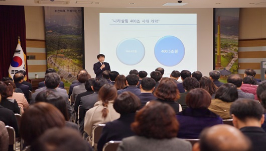 이번 특강은 군청 대회의실에서 전 공무원이 참석한 가운데 기획재정부 예산실 최재영 부이사관을 초빙해 국가예산의 이론과 실제를 주제로 전 공무원의 국가예산 확보 마인드 향상과 경쟁력을 강화하여 주요 현안사업 추진에 박차를 가하고자 개최했다.
