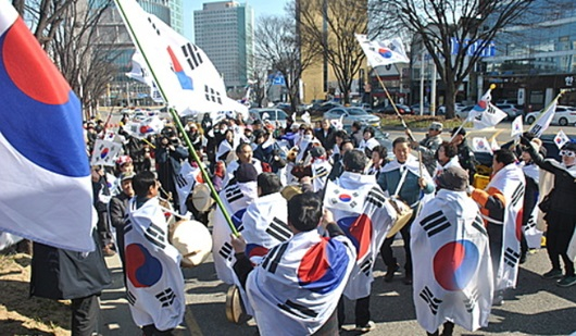 대통령 탄핵기각을 위한 국민총궐기운동본부(탄기국)는 3일 경북 구미시청 앞에서 박근혜 대통령 탄핵 무효를 주장하는 집회를 가졌다. |