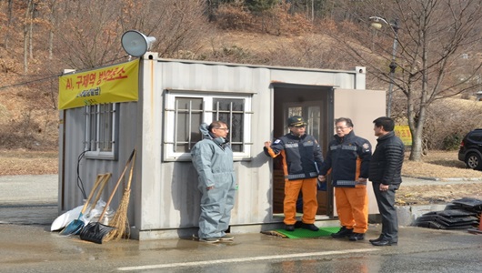 우재봉 경상북도 소방본부장은 2월 9일 구제역이 발생한 충북 보은과 접경을 두고있는 상주 화남 구제역 통제초소를 점검하고 현장 근무자를 격려했다. 점검은 최근 AI에 이어 구제역이 충북 보은, 전북 정읍에 잇따라 발생함에 따라 철저한 차단방역을 당부하고 통제시설을 점검해 구제역 확산을 사전에 차단하기 위해 추진됐다.