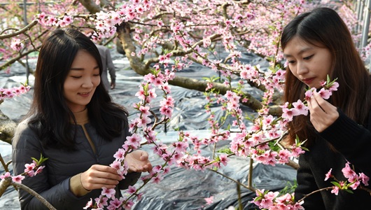 복숭아의 고장 경산에 봄의 시작을 알리는 복사꽃이 겨우내 움츠렸던 연분홍 꽃망울을 활짝 터뜨렸다. 경산시 압량면의 복숭아 시설하우스에 1월말부터 피기 시작한 복사꽃이 만개한 가운데 분홍빛 화사함으로 눈이 호강한다는 복사꽃을 구경하기 위해 찾아온 상춘객들의 발걸음이 이어지고 있다. |