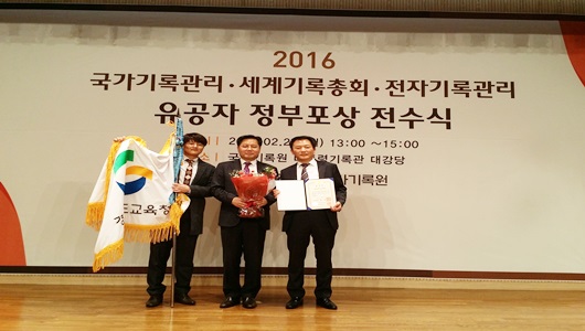 경북교육청(교육감 이영우)은 국가기록원에서 실시한 ‘2016년 기록관리 기관평가’ 우수기관으로 선정돼 2월 27일 대통령기록관에서 국무총리 기관표창을 받았다.