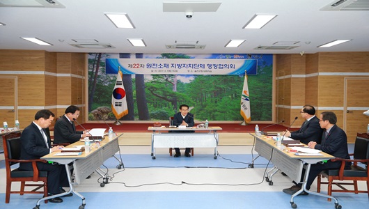 지난 3월 7일 울진군청 대회의실에서 임광원 울진군수, 김준성 영광군수, 이상욱, 경주부시장, 이도준 기장부군수, 이경걸 울주부군수 등 5개 단체장이 참석한 가운데 '제22차 원전소재 지방자치단체 행정협의회(이하 행정협의회)'를 개최했다.