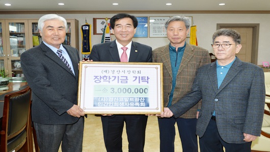 (사)경산코발트광산유족회는 3월 14일 경산시에 장학금 300만원을 기탁해 지역사회에 훈훈함을 전했다.