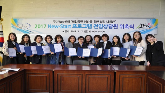구미교육지원청 Wee센터는 3월 17일 구미교육지원청 소회의실에서 ‘2017년 New-Start프로그램 전임상담원 위촉식 및 교육’을 실시했다. 이날 행사에서는 New-Start 전임상담원 위촉장 수여, New-Start 프로그램 및 전임상담원 역할 이해에 대한 교육 순으로 진행됐다.