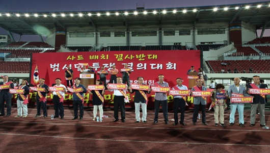 김천시의회는 김천시 종합운동장에서 전 시민이 참여한 사드배치반대 총궐기대회 2회, 국방부장관 및 정당대표, 도지사 면담 수회, 전 시의원 삭발, 생명을 건 단식 투쟁, 청와대까지 도보투쟁 등 사드 설치를 막기 위해 가능한 모든 수단을 강구해 강력하게 투쟁하여 왔다.