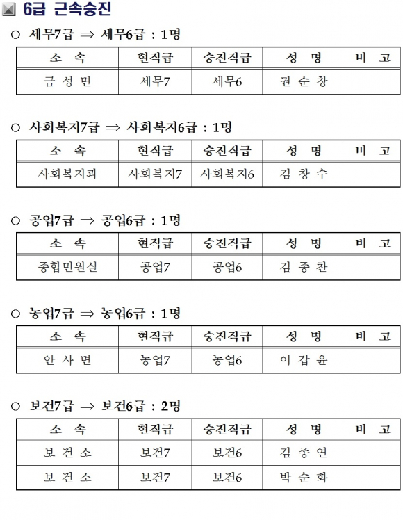 의성군 3월 28일자 인사위원회 개최 결과 발표
