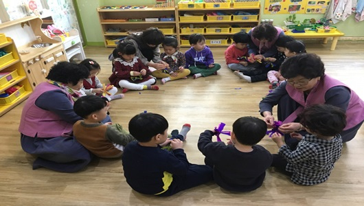 옛날 옛적에 놀이터 사업은 관내 어린이집, 지역아동센터, 아동관련 기관을 대상으로 참여 신청을 받아 14개소에서 진행하게 된다. 전래놀이지도사에 참여하는 어르신들은 2015년 기본교육과정을 수료하고 자격증을 취득한 10명의 전래놀이지도사로 구성돼 있다.