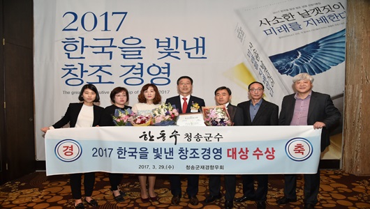한동수 청송군수는 3월 29일 밀레니엄 서울힐튼호텔에서 열린‘2017 한국을 빛낸 창조경영’시상식에서 지속가능경영부문 대상을 수상하는 영예를 안았다.