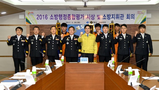 경상북도는 3월 28일 도청 소방본부 작전회의실에서 소방행정역량 강화와 도민행복 안전경북 실현을 위해 추진한 2016년도 소방행정종합평가 결과 시상식과 당면현안 업무지시를 위한 소방지휘관 회의를 개최했다.