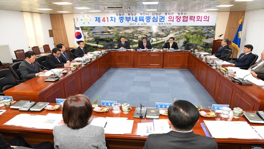 영주시의회는 4월 4일 소회의실에서 ‘제41차 중부내륙중심권 의정협력회 정기회’를 개최했다. 중부내륙중심권 의정협력회(회장 단양군의회의장 조선희)가 주관하고, 영주시의회가 주최하는 이번 정기회는 영주시를 비롯해 경북 봉화군, 충북 제천시·단양군, 강원 영월군·평창군 등 3도 6개 시·군 의장, 부의장, 관계 공무원 등 약 30명이 참석해 ‘2016년 결산 및 주요안건’을 협의했다.