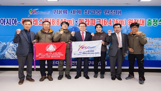 구미시는 지난 3월 22일 구미시체육회관 2층 회의실에서 ‘Yes Gumi 세계 7대륙 원정대’의 아시아 에베레스트(8,848m) 정상 도전을 위한 출정식을 가졌다.
