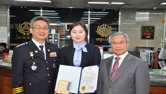 경산경찰서는 4월 11일 경산신용협동조합 본점에 근무하는 최현정 서기에게 신속한 대처로 1천여만원 상당의 보이스피싱 피해를 막은 유공으로 감사장을 전달했다고 밝혔다.