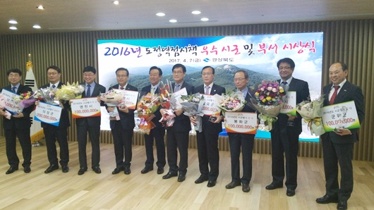 봉화군은 지난 4월 7일 경북도청 본관1층 다목적홀에서 개최된 2016년 도정시책추진 우수 부서 및 시·군 시상식에서 우수상을 수여했다.