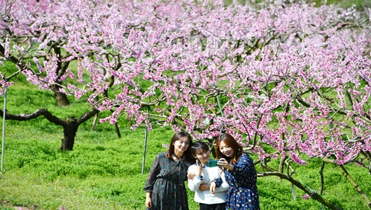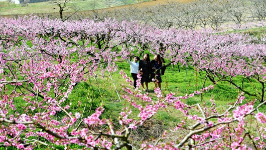 지금 청도의 산과 들은 온천지가 분홍빛이다. 4월 13일 경북 청도군 화양읍 복숭아밭 일대가 만개한 복사꽃으로 아름다운 장관을 이루고 있다.